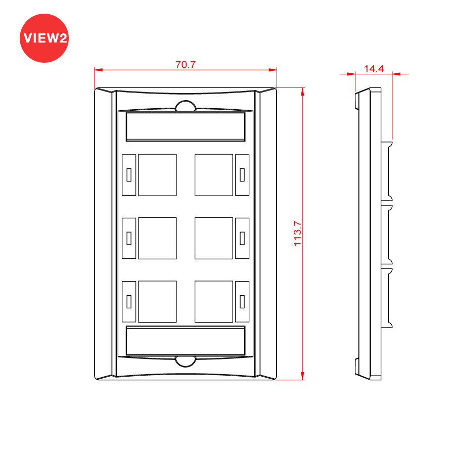 Single gang faceplate, w/ icon tabs, 6 Port, size_114 x 70 x 10. (1, 2, 3, 4-Port Available)