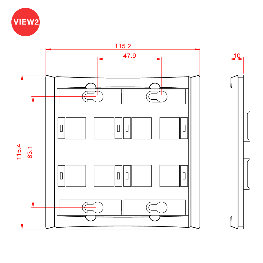 Double gang faceplate, w/ icon tabs, Port 8, size_115 x 115 x 10. (12-Port Available)