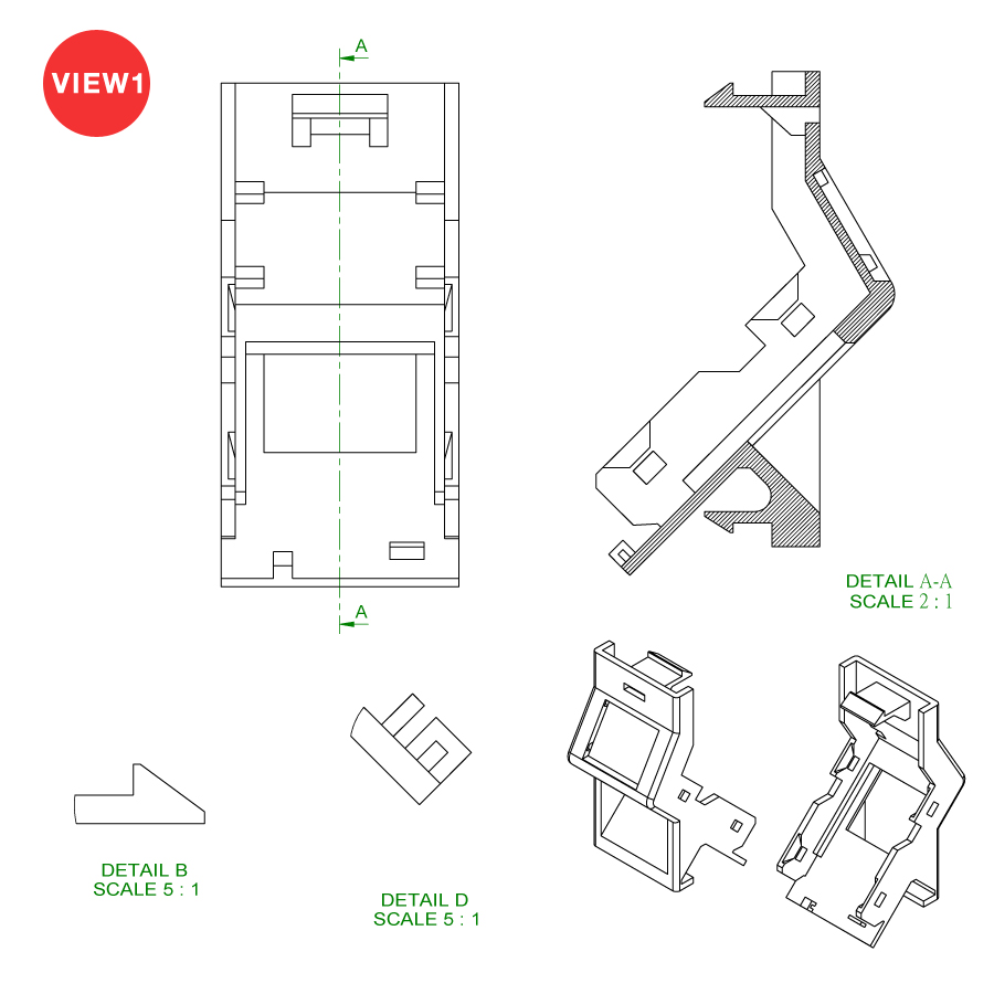 Unloaded angled module, shuttered, w/ icon tabs, 1 Port, size_25 x 50