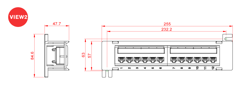 Cat.6 channel compliant UTP wall mount patch panel, 110/KRONE IDC